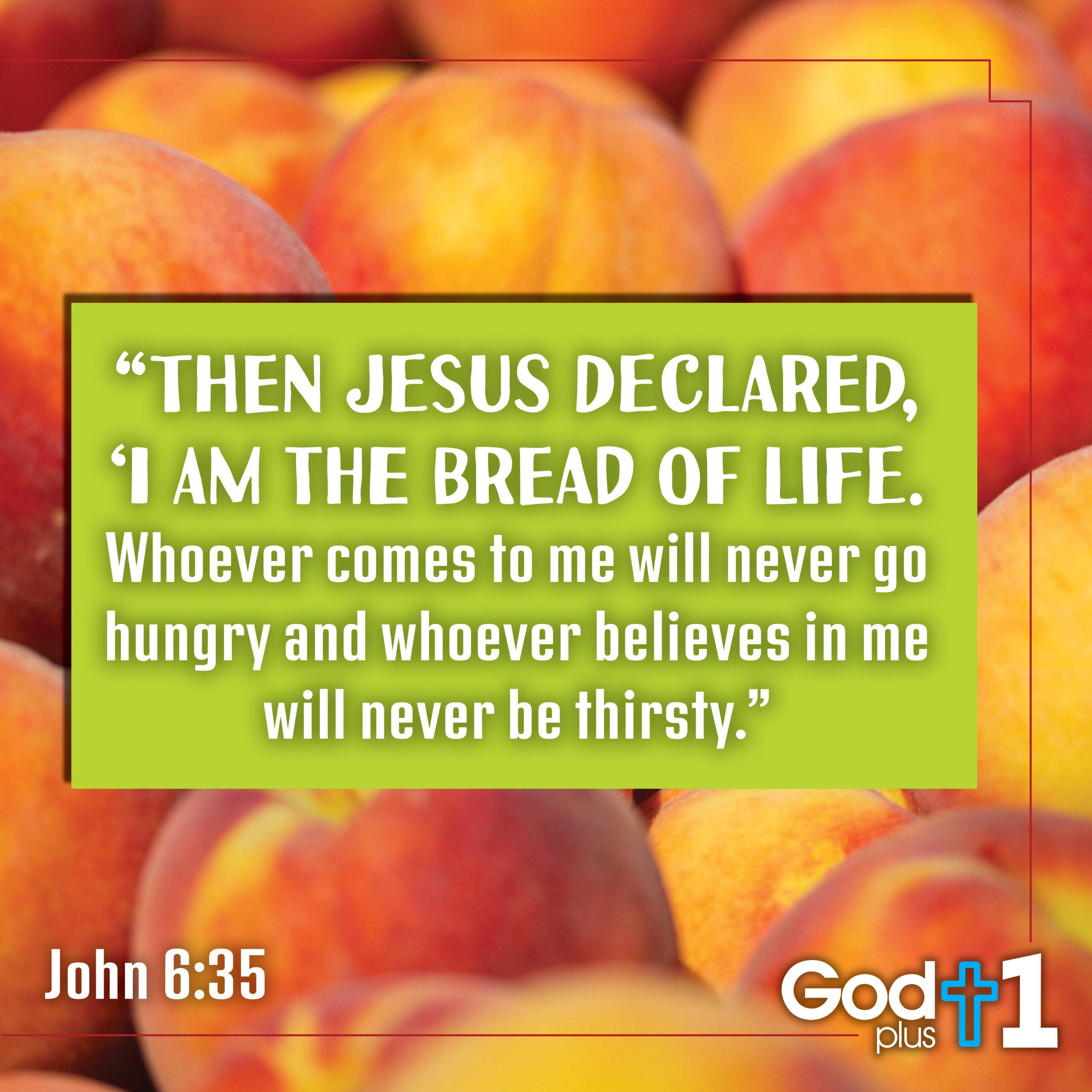 Verse Reflections: We must come to God in order not to be hungry. There you go! This is the message we have learned in the God Plus One process of life. We must start our day by coming to Him. His food, His fulfillment, His peace will fill our souls. The overeating we indulge in because of guilt, because of anxiety, because of depression will disappear. God can overcome, has overcome all of this. God is saying that He will fill the emptiness in our lives and we will be full of His contentment. His grace literally erases the past and takes care of the future. I love growing older because every passing year teaches me that “I can get through this”. When we are younger today sometimes seems insurmountable. It never ceases to amaze me what one good night of sleep can do to change our perspective. And if the one night doesn’t work, it seems a full week of life always changes the situation. I stress and worry so much less now. I have been through so much and tomorrow always comes. We have great weeks and we have bad weeks and it all evens out into a great life with God. He is the bread of life, our eternal, not a temporary solution. He takes away the anxieties that cause the uncontrollable urges to eat unhealthy foods. We must believe in Him.