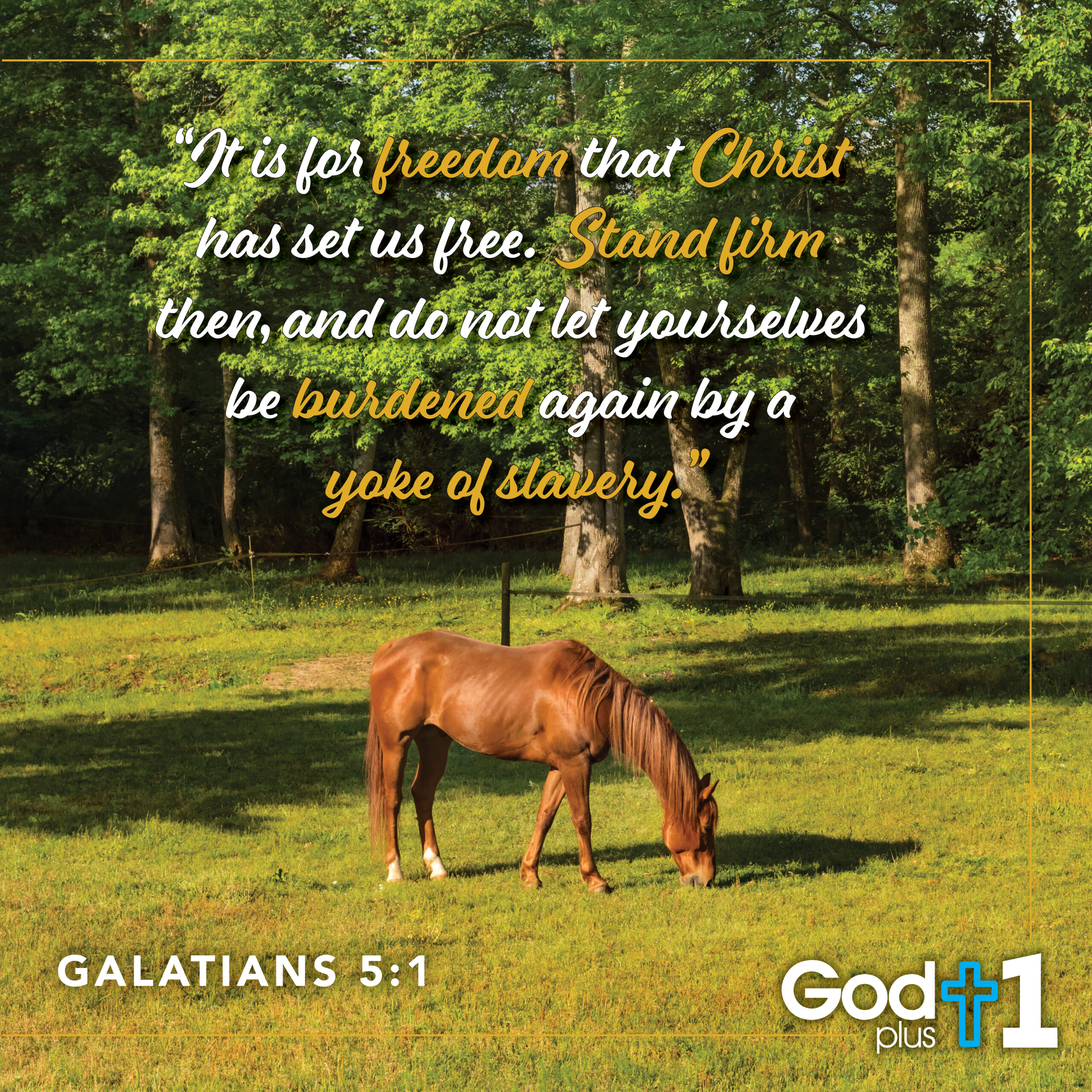 Verse Reflections: God has set us free! We are free from eating unhealthy foods. We are not slaves to food any longer. We get to stand firm in this new freedom. We will not be burdened again by the yoke of slavery to food and its pull on our spirit. Claim it. Name it. Christ sets us free from all temptations of the world. Our temptation is food. God has set us free from this temptation and every temptation. What a great place to be after a long life of fighting and giving in, fighting and giving in. I will no longer allow this yoke around my neck because Christ has removed it. I acknowledge the weight that has been taken off. I actually feel lighter in my spirit. The next time another power tries to convince you that you “need” that food, just speak your freedom out loud. You are free from that slavery. You do not “need” that food. Choose another one, eat it and you will be amazed how your spirit will calm.