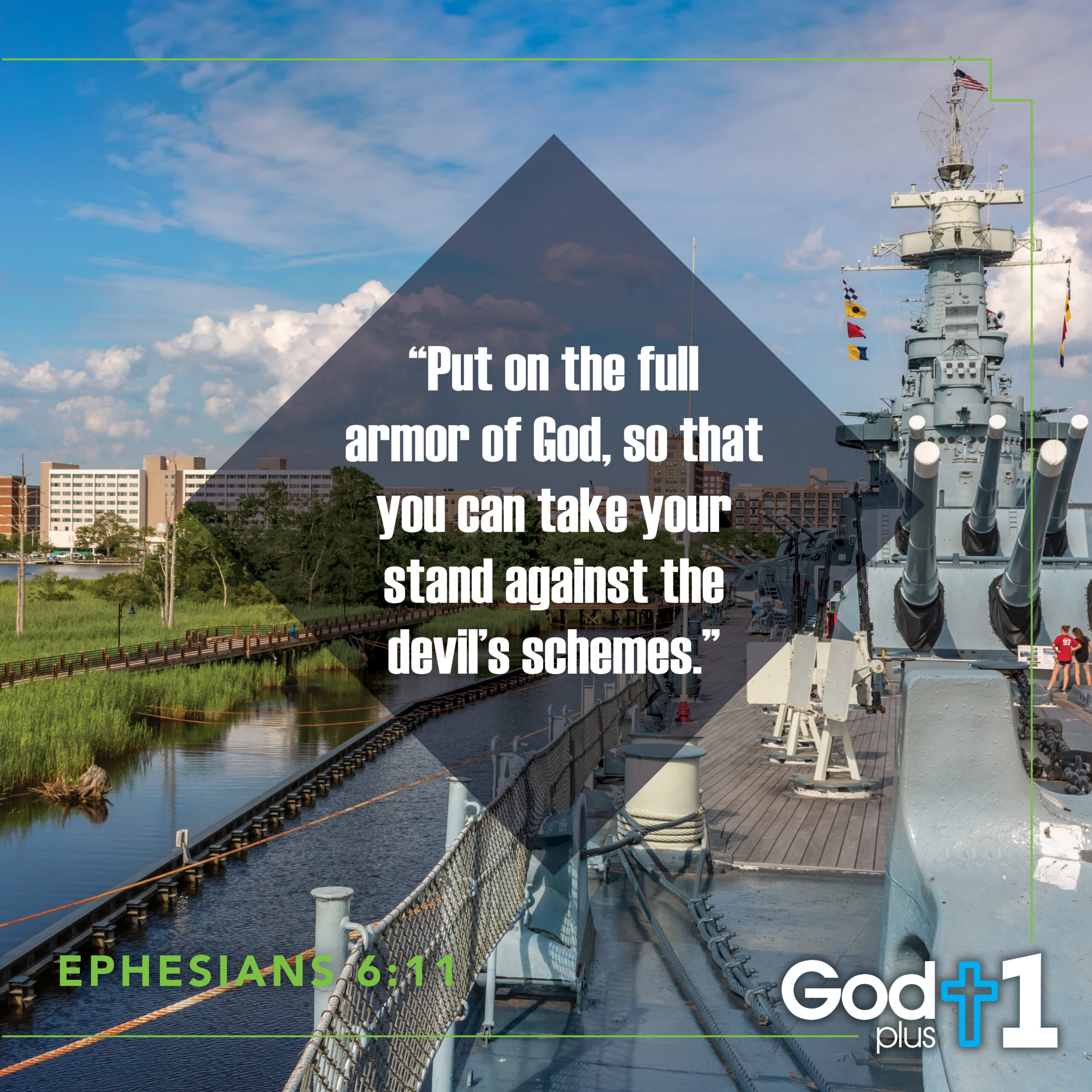 Verse Reflections: I like to blame the devil’s schemes on my failure to eat right. In my head, He is the one whispering in my ear to have some of that cream cheese pound cake, fried chicken… And I have to say, the word “schemes” is pretty accurate. Every day, someone, at some event comes up with a great reason for me to wait until tomorrow to make the right choices: someone’s birthday, someone’s feelings because they cooked a wonderful desert or meal, a buffet of homemade foods, the perfect food I don’t get to indulge in often… I will admit that the devil knows this is my weakness so his schemes sometimes pay off. I am getting stronger with these devotions. It helps to stop every day and focus on God. The devil’s tricks do not pay off when I come to God each day for His word (the offensive sword). If I am on the offense, I don’t have to worry as much about the defensive protection of armor. However, when I stop and talk to God, listen to God, I automatically have the helmet of salvation, the belt of truth, the breast plate of right-ness (righteousness). It amazes me how easy it is to be fully armored when I just stop for 30 minutes, even 15 minutes a day to read the word of God and weave it into my soul. I CAN stand against the devil. I WILL stand against the devils schemes. If you are reading this, you understand that eating can be a tool he uses to make us less Godly. I am wearing the armor of God, my breastplate has been soaked in the living waters of God so that I can withstand the fiery arrows of the devil. We’ve got this!! God plus 1 devotion automatically gears us up and protects us.