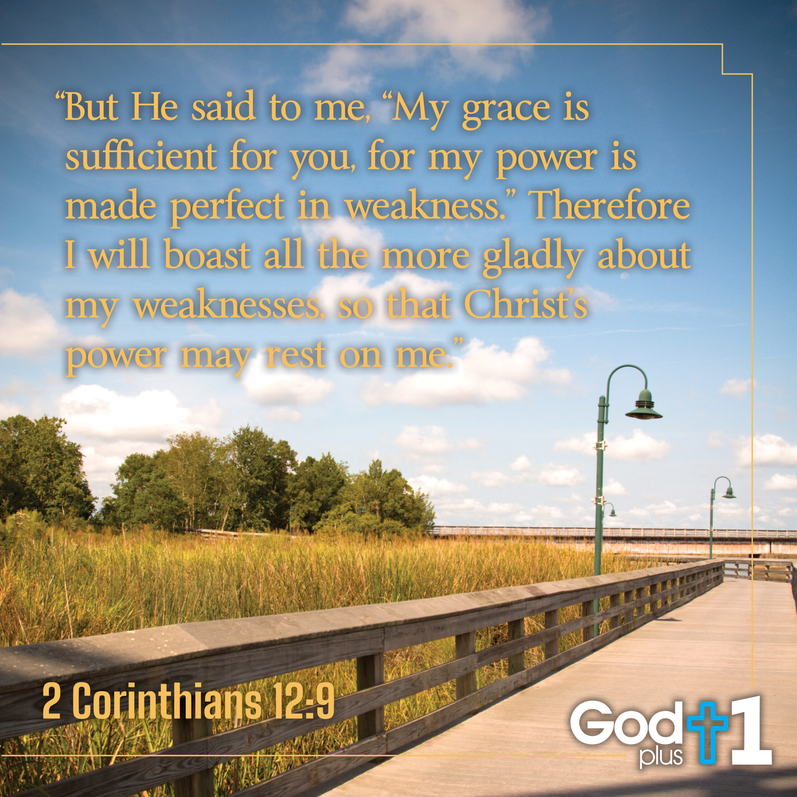 Verse Reflections: Perfect Power. Incomprehensible. Unbelievable. I am so crazy weak, I can’t even choose healthy foods every day. The releasing freedom is the knowledge that I don’t have to be strong, I can be weak because I have God’s power. This power is the very reason God Plus 1 works. If we start our day giving our weakness over to God and access His power then we can do this. We can eat healthy. We can choose God foods. How freeing to know that God’s power is made perfect in my weakness. I cannot eat healthy on my own. I cannot keep away the compulsive thoughts that lead to eating way past comfort. I think anxiety carves out an imaginary hole in my stomach and then I begin to eat to fill it. My anxiety seems to disappear only after the food nestles in or pushes on all sides of the hole I have carved. The good news is that these devotions, reaching out to His power daily protects me from myself. His power is made perfect. When I give my day to Him anxiety doesn’t creep in. I am a strong woman, I seldom let life get to me and yet this anxiety hole that I fill is my little secret. It creeps in, it doesn’t storm. Everything will be going along great and all of a sudden, something will happen. I keep smiling and rocking through life but a little treat will pop into my head and a wicked little inside smile gives me an adrenaline rush of excitement that pushes away the negative emotion. I keep adding thoughts until I run out to buy or run to the kitchen to make and then indulge in all my food thoughts. The anxiety or depression just seems disappear with every bite. This imaginary relationship between life and food is a vicious cycle for me. God’s power is giving me healthier habits such as healthy snacks at 10:00 and 3:00. When I add snacks the food thoughts don’t build. God snacks make a difference. I must concentrate on the fact that God’s grace is sufficient. I don’t need food.